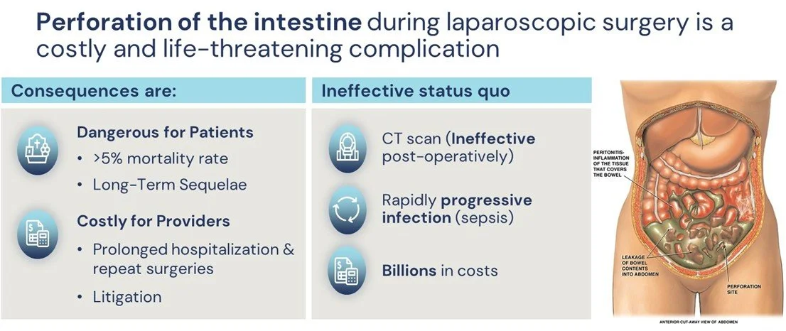 With more than 15 million laparoscopic procedures performed annually, solutions to the associated risks are more pressing than ever. Morbidity from the delay in treating a perforated bowel can be severe.